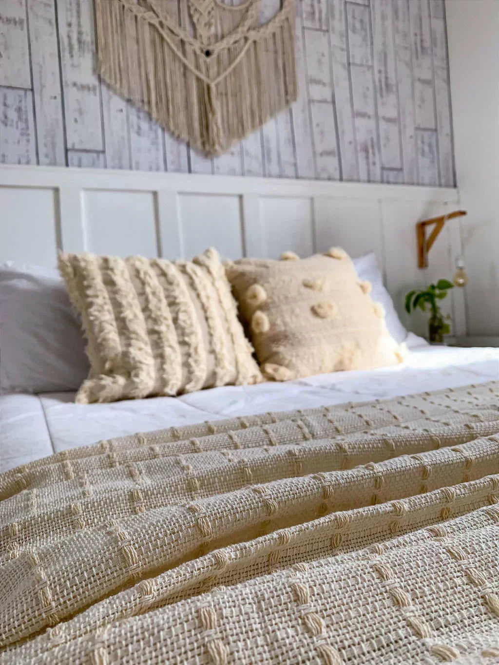 Nuestras mantas Marcelle son simplemente maravillosas. Su bordado en relieve les aporta textura y ligereza, haciéndolas atemporales e informales. Su color neutro permite una variedad de combinaciones que harán cualquier espacio más sofisticado y acogedor.