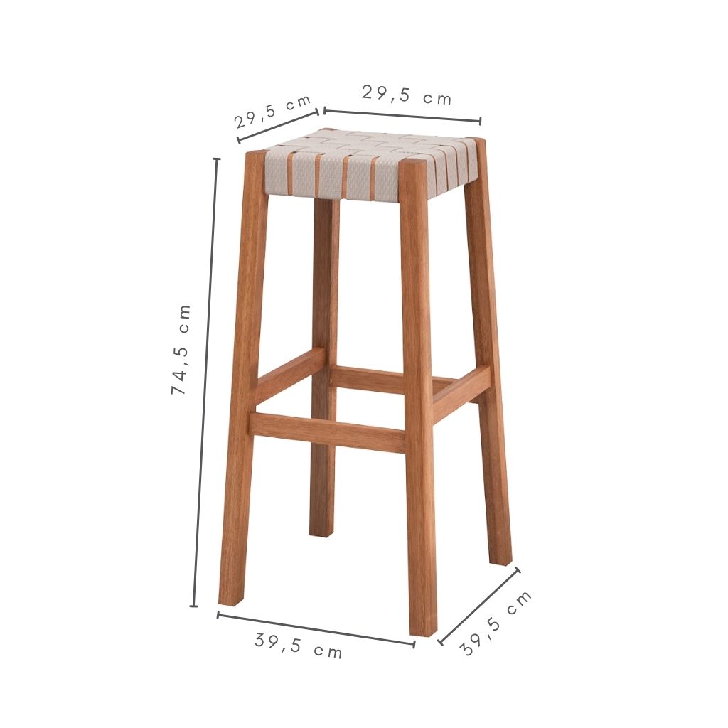 • Banqueta Alta de Madera de Eucalipto – Stain Castaño – Asiento en Cinta Beige