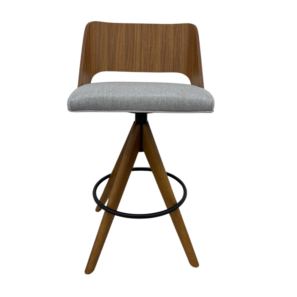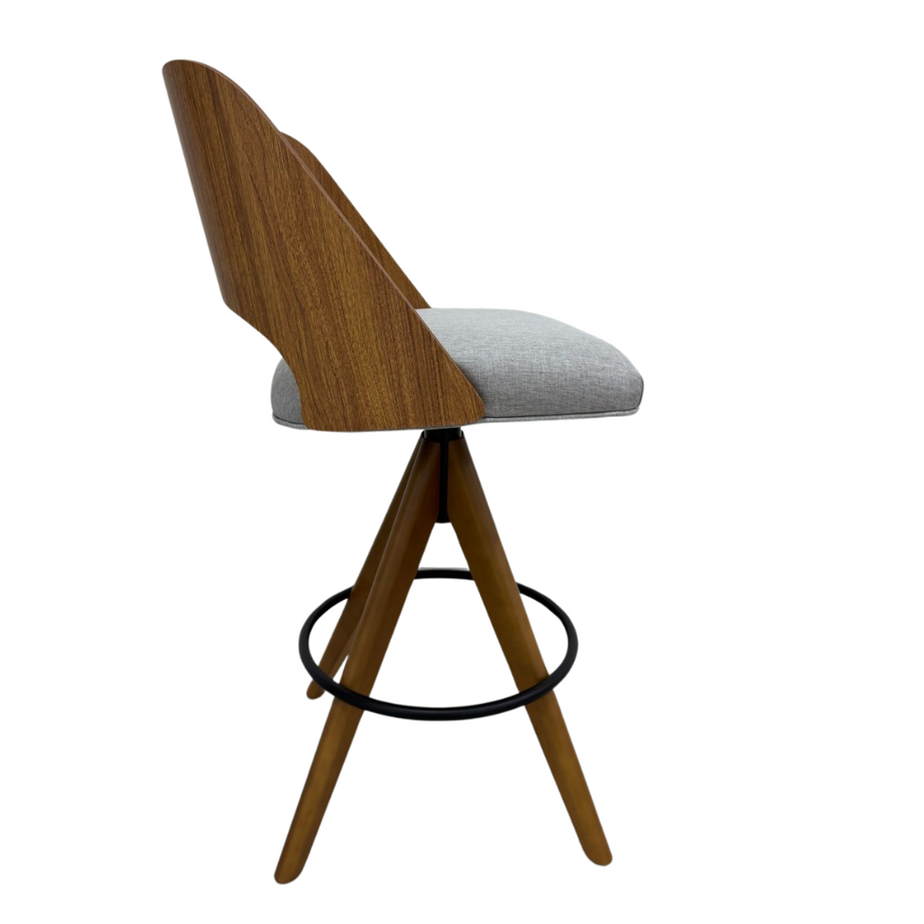 Banqueta Tapizada Giratoria Márcia – Freijó – Tela 362 Piccolo Gris – 65 cm